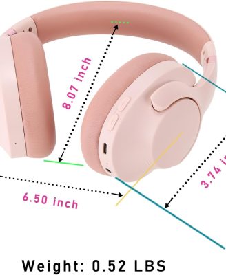 INFURTURE Upgrade Rose Gold Active Noise Cancelling Headphones with Microphone Wireless Over Ear Bluetooth, Deep Bass, Memory Foam Ear Cups, Quick Charge 90H Playtime, for TV, Travel, Home Office